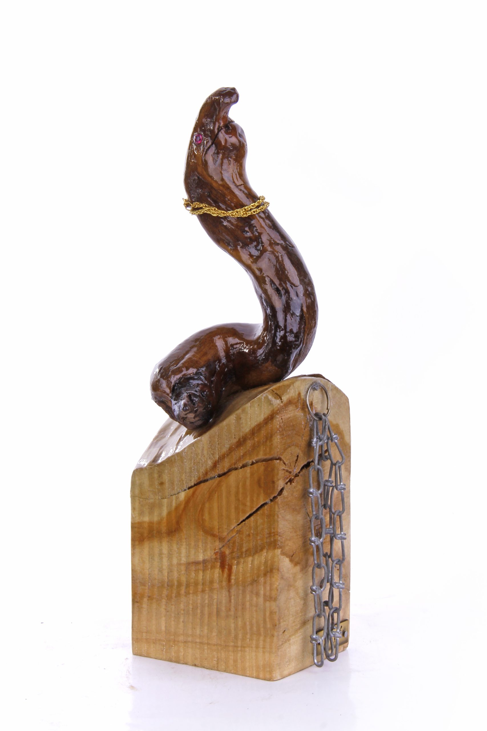 پیکرهای کشیده و متمایل به بالا، تنها و بیتکیهگاه، با حلقهای بسته به بازویش و زنجیری رها در کنارش. فرمی که گرچه از درون زخمیست، اما از بیرون همچنان در حال برخاستن است. «آنکه تنها بالا میکشد» ستایش پایداری بیتشویق است؛ روایتی از اعتماد به نفسی که نه از تایید دیگران، بلکه از دل رنج و خلأ زاده شده. اثری دربارهی سکوت، باور و جسارت ایستادن وقتی هیچکس نیست.