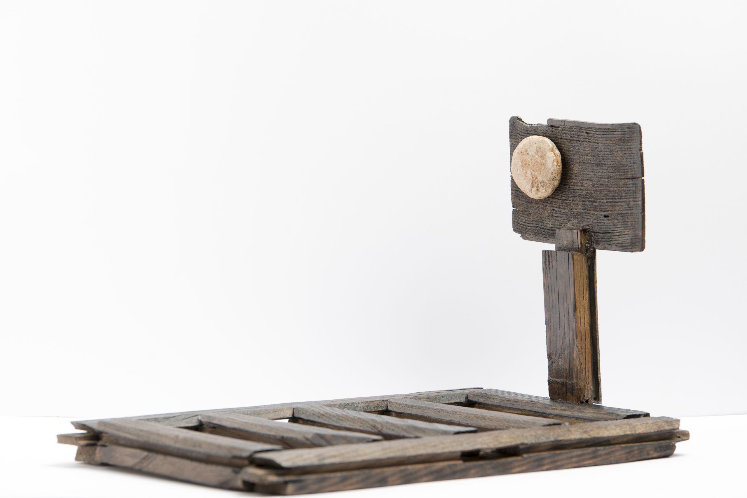 شرح اثر: اثری اعتراضی با نگاهی فلسفی-سیاسی به مرگ و سوگواری در سرزمینی که ایمان و فقدان در هم تنیدهاند. سنگ مهر بر تابلو تداعیگر مرگیست که تقدیس میشود و زمینِ چوبی، گورستانی خاموش را مجسم میکند.