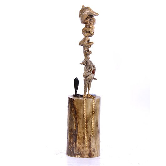 فرمی متراکم و درهمتنیده، با چینخوردگیهایی که همچون حافظه، تجربه، یا هویت درون هم فشرده شدهاند. نه آشکار، نه پنهان؛ نه انسان، نه شیء—بلکه چیزی میان بودن و درک شدن. «خود در لایهها» تندیس انسان معاصر است: لایهلایه، مرموز، و پیوسته در حال بازنویسی خویشتن. اثری که با سکوتش فریاد میزند: «من تمام نمیشوم، فقط پیچیدهتر میشوم.»
