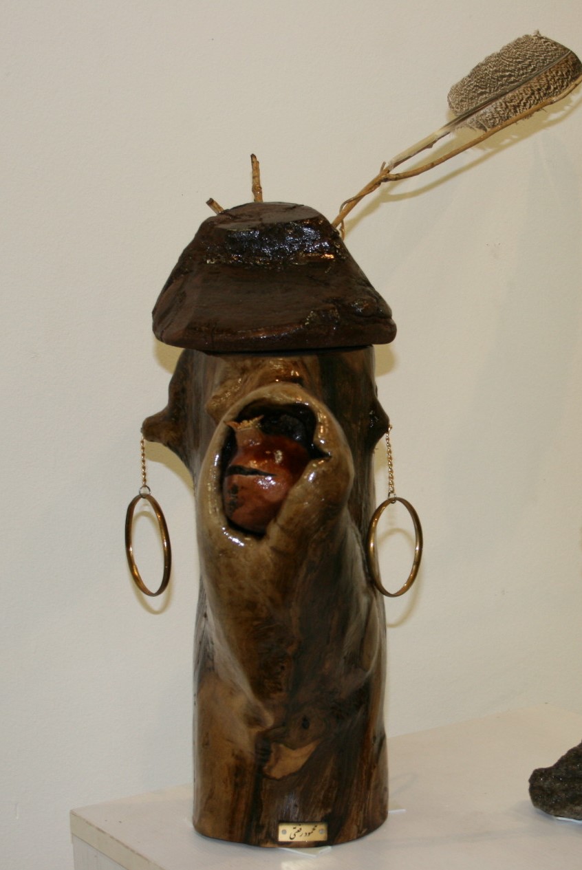 مجسمه «در سرِ بیهوا» ترکیبی از فانتزی، طنز تلخ و آرایش اغراقشده است. ساختاری انسانی دارد با دهانی گشوده و اناری خشکشده درون آن، که نشانی از شورِ از دسترفته یا زیباییِ بیثمر است. حلقههای فلزی آویخته بهسان گوشواره، و پرِ پرندهای که از سر بیرون زده، همه در پی خلق تصویری از خیالی زیبا ولی پوچاند. اثر با زبانی استعاری، خودآراییِ بیمعنا و وانمودهای پُرطمطراق را به نقد میکشد.