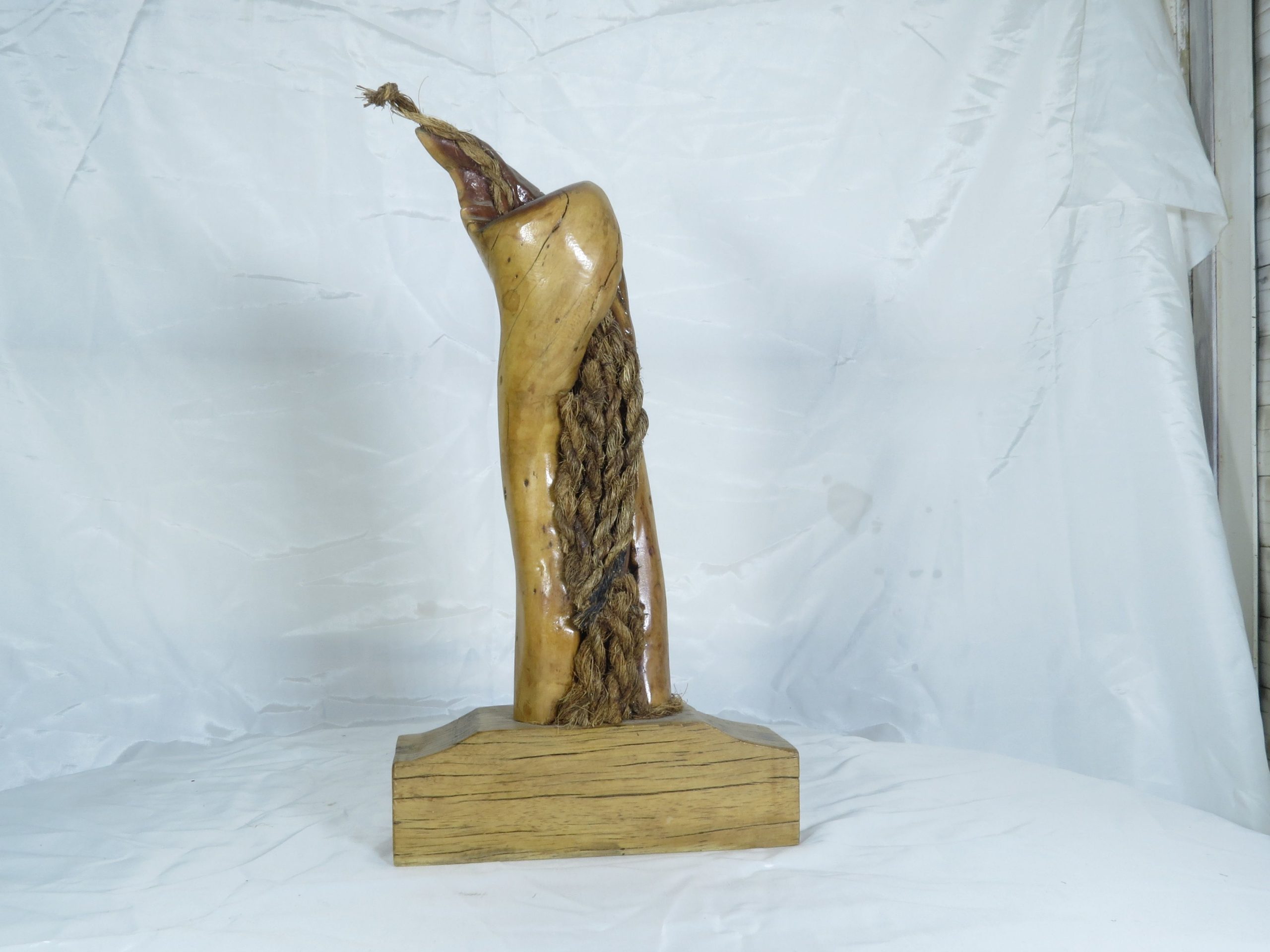 اما در تضاد کامل با سطح بیرونی، شکافی در امتداد تنهی مجسمه دیده میشود که درون آن طنابهایی ضخیم و درهمتنیده قرار گرفتهاند.