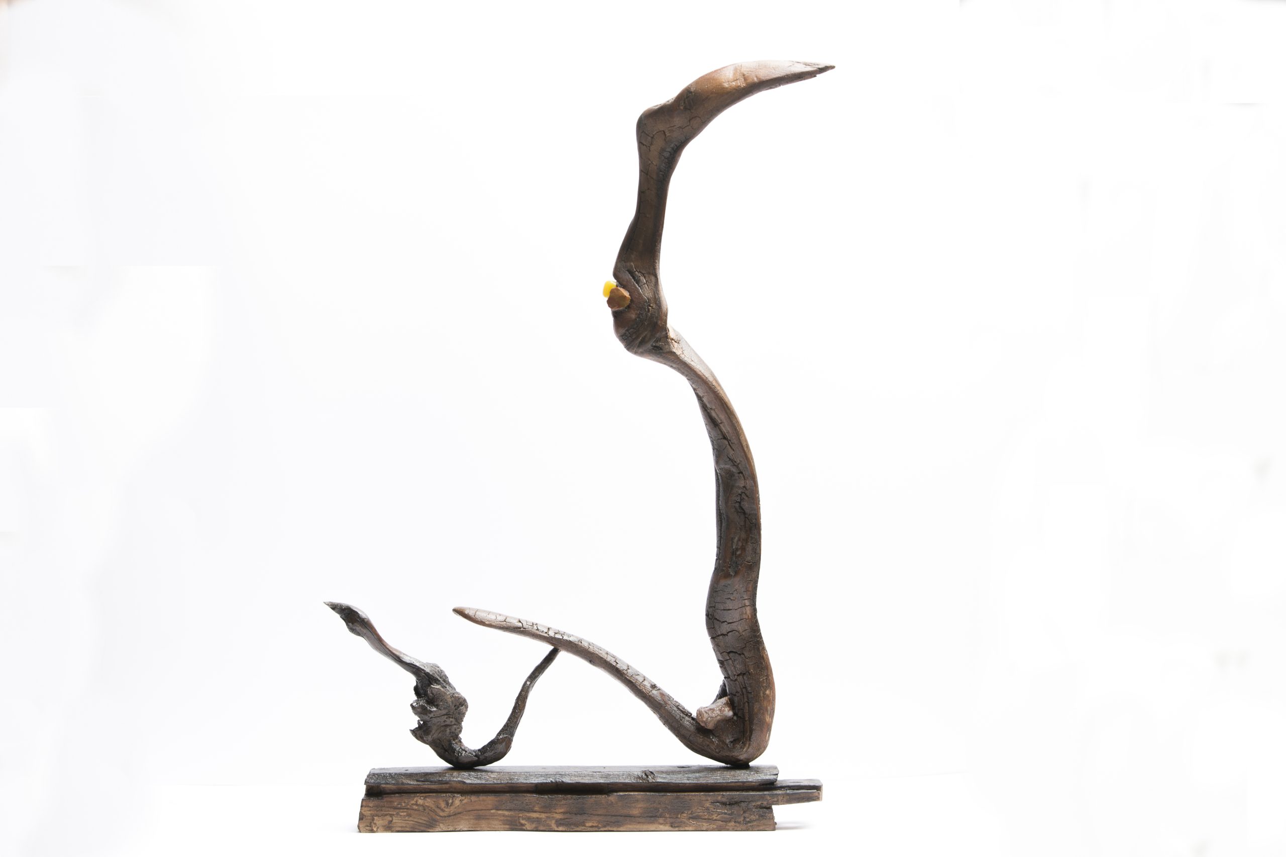 در نگاه اول، دو فرم چوبی را میبینیم که یکی بلندتر و ایستادهتر است، و دیگری خمیده، کوتاهتر. نه یکی سوار بر دیگریست، نه در رقابت با او. این اثر از تضاد نمیگوید، از تفاوت میگوید. و مهمتر از آن، از پذیرش تفاوت.