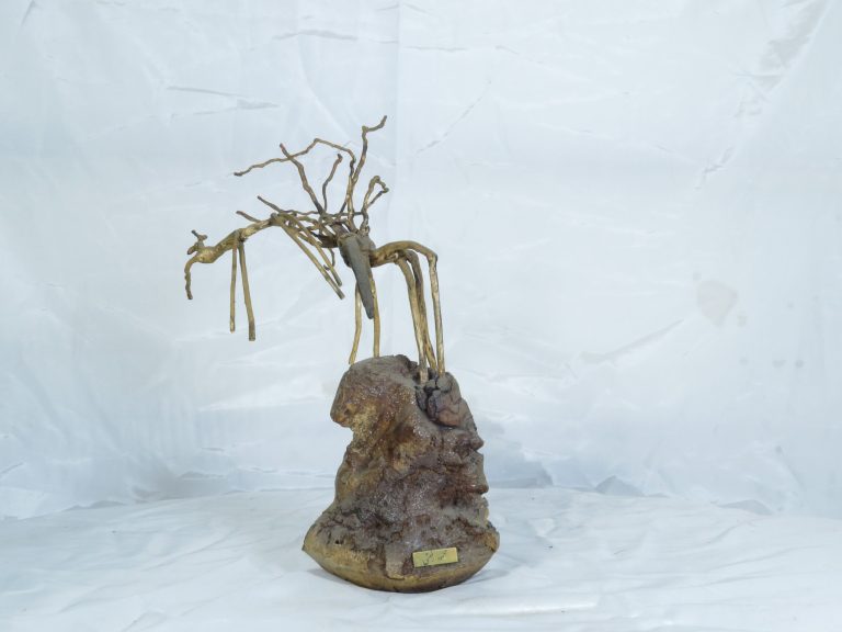 پیکرهای کشیده و بیچهره بر سطحی از چوب خام ایستاده، گویی سایهای از گذشته است که هنوز بر امروز سنگینی میکند. اثر یادبودیست از خاطرات، ریشهها، و آنچه بوده و دیگر نیست – اما هنوز نگهبانی میشود. «یادبان» انسانیست که از گذشته خود نمیگذرد، یا شاید نمیتواند؛ بخشی از وجودش را وقف محافظت از آن کرده، هرچند آن حافظه، باریست که بر دوشش سنگینی میکند.