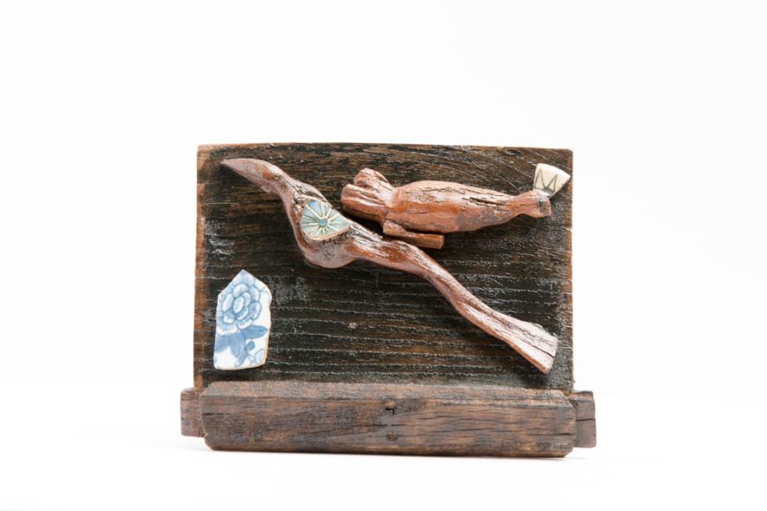 Description: This sculpture evokes cherished memories fading into time — an abstract bird formed from wood and ceramic, poised between flight and stillness, brushing the mind like a passing breeze.