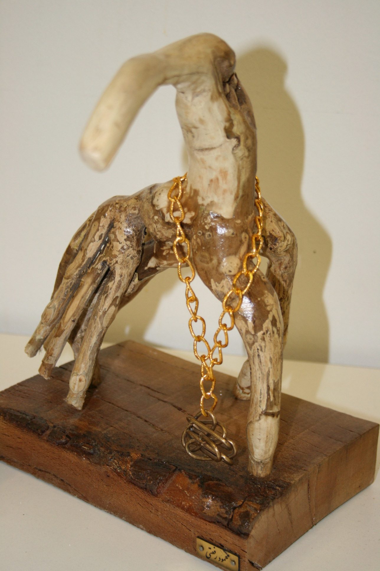 | Description: A hunched, performative figure adorned with a golden chain ending in a cold knot. *The Irony of Tragedy* captures the clown who brings joy while entangled in internal wounds. A laughing mask, a bound soul. |